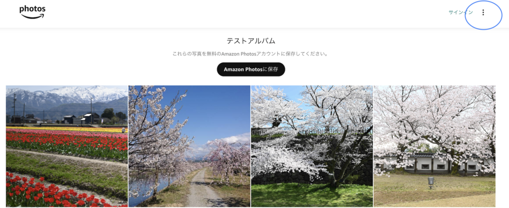 ご案内のURLをクリックすると、次のような画面に切り替わります。右上にある「・」が3つ並んだボタンをクリックします。